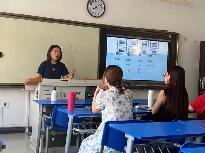 马佳君老师对于西语主要国家的情况进行了简要介绍,然后带领学生进行了西班牙语的实操训练。进而对于西语重要国家:西班牙、墨西哥、古巴和阿根廷的文化和风情进行了逐一介绍。马教授热情投入,活动中既包括各国文化的宏观介绍,又包括大众文化的细致分析,并突出自然风光和文化遗产的特色。不仅让学生了解这四个西语国家的主要国情文化,同时让学生掌握西班牙语语言的入门知识和其语言特点,提升学生的文化素养、国际视野和跨文化交际能力。同学们专注而投入,踊跃提问,学生通过该活动扩大了视野,提升了个人素质与能力,在学习态度和学习动力方面取得了新认识和新体会。