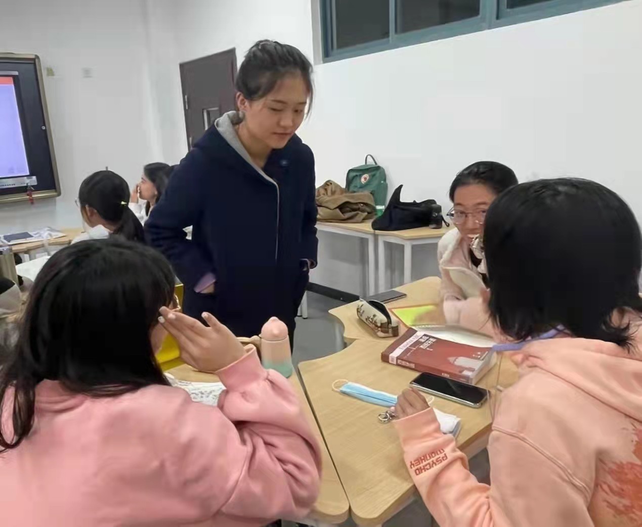 接下来,便是徐纤禧、王悦园与同学们的西语角互动(读音纠正,绕口令练习,简单西语对话):