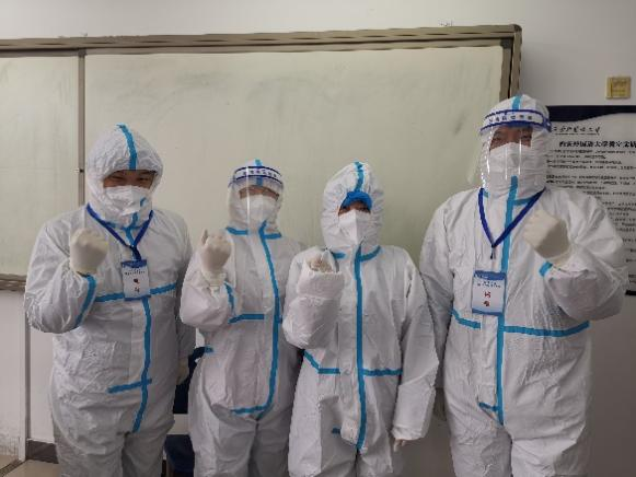 李九全副院长、苏红霞副院长以及龙湛、陈乐和窦睿音三位教师加入学校研招考试“党员先锋突击队”。在12月25日、26日研招考试当天,身着防护服,变身“大白”,成为特殊考场--“隔离考区”(由B类和C类考生组成)的监考老师,完成了一场特殊的监考。经过全院上下38名教师的共同努力,好色网