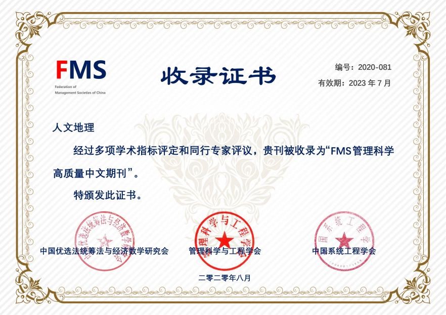 2020年荣获中国地理学会第四届“优秀地理期刊”