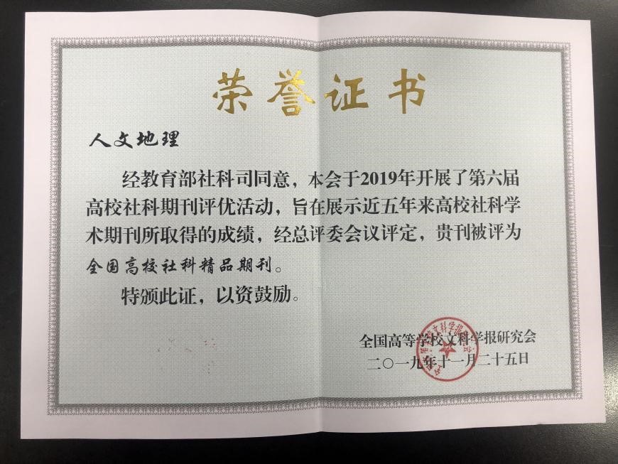 学院拥有《人文地理》期刊,是我国唯一专门研究人文地理学的杂志,是向国内外公开发行的人文地理学综合性学术刊物,荣获国际地理联合会文化地理研究会中国期刊、中国社会科学引文索引(CSSCI)来源期刊、中国最具国际影响力优秀学术期刊等荣誉。