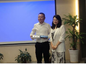 最后,学院赠与中交一公院由我校和外语教学与研究出版社联合修订出版的《新世纪汉英大词典》。学院赠与优秀校友乔亮校庆纪念品,他激动的表示感谢母校多年的培养和老师们的关照。