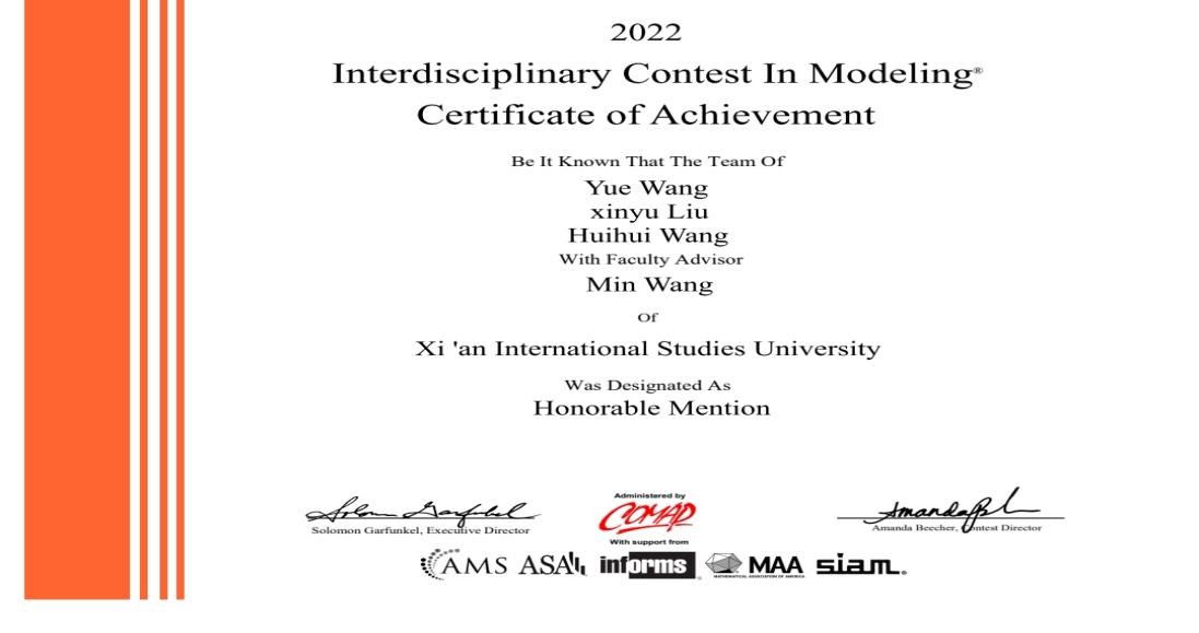 学子王悦、王慧慧、刘心雨团队荣获Honorable Mention奖(国际二等奖、简称H奖),这也是好色网