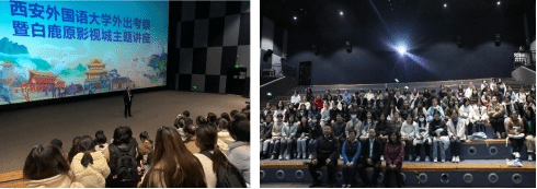 随后,在黑娃演艺厅,白鹿原影视城总经理田光辉为大家做了一场精彩的讲座,讲述了白鹿原影视城的前世今生。田总富有激情地讲述了景区创建的背景下、运营现状、存在问题、应对策略以及下一步发展规划。在讲座的互动环节,同学们积极提问,田总耐心解答,直言不讳挑明了白鹿原影视城的三大缺陷以及破解之法。田总谆谆教导同学们同质化的旅游产品是没有竞争力的,创新是生产力,要放在产品开发的首位。作为旅游业界的杰出代表,田光辉总经理生动富有激情的讲座加深了同学们对旅游管理行业实质的认知,激发了大家对专业学习的浓厚兴趣与热情。