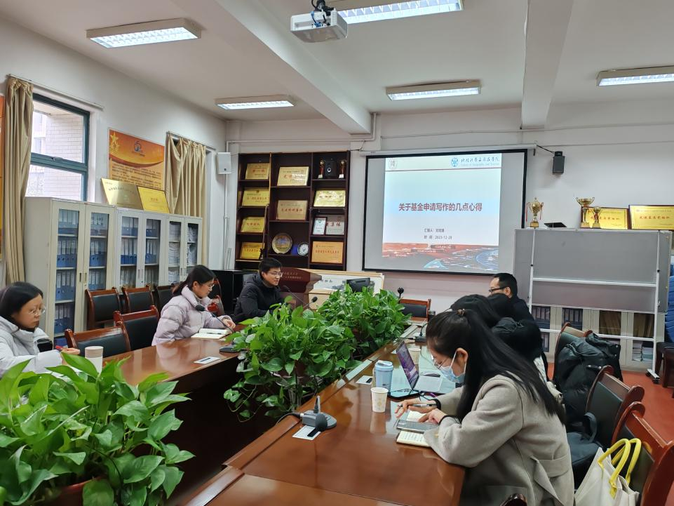 部分青年教师对2024年度科研项目的拟申报题目和研究思路进行了梳理和分享,参会老师教师围绕各项目书展开提问与讨论。
