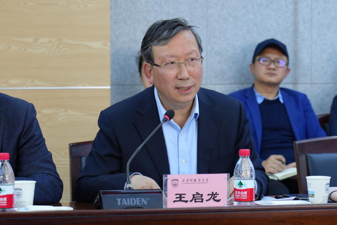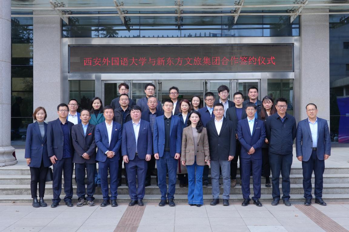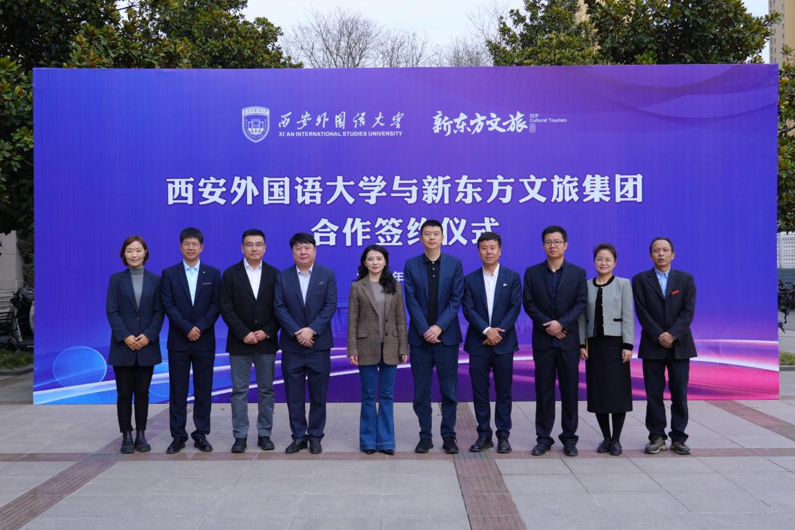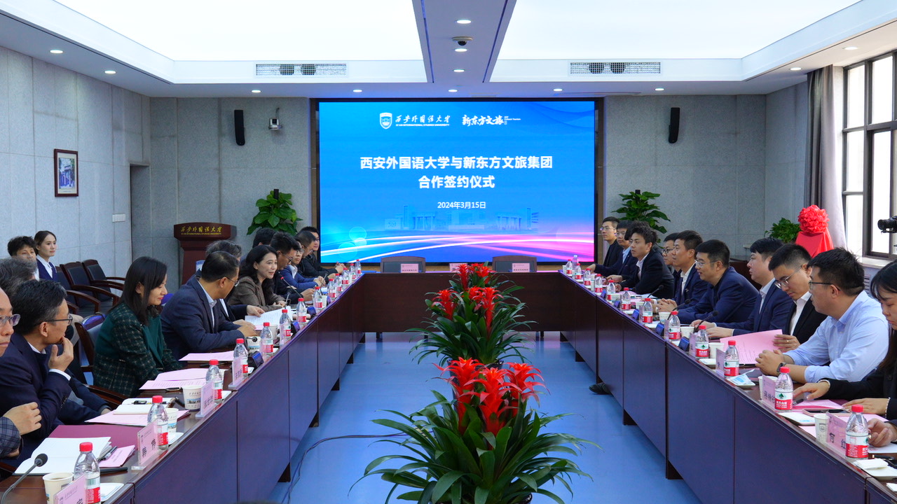 3月15日下午,学校与新东方文旅集团、新东方沃凯德(陕西)文旅有限公司战略合作签约仪式在长安校区行政楼B304会议室举行。副校长(主持行政工作)王启龙,相关职能部门和学院负责人,新东方教育科技集团执行总裁兼CFO、新东方文旅集团总裁杨志辉,新东方文旅集团副总裁江思远,新东方教育科技集团助理副总裁兼西安学校校长、陕西新东方文旅公司总经理姚振华及新东方文旅集团相关成员出席签约仪式并举行会谈。会议由党委副书记马洁主持。