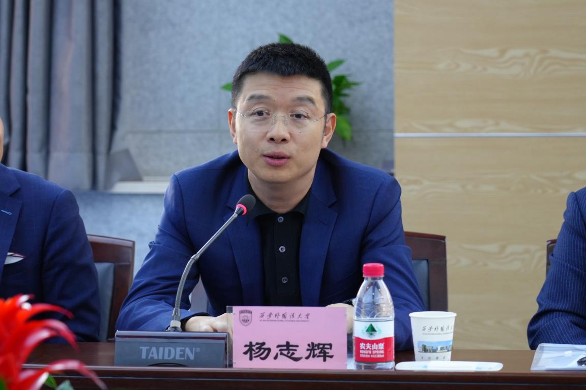杨志辉对学校多年来持续为新东方教育科技集团输送高质量人才表示感谢,简要介绍了新东方的发展史和新东方文旅集团的总体概况。他指出,将努力用好新东方的资源、平台和技术为校方赋能,期待未来在文旅融合创新产品开发、多语种国际文旅人才联合培养等方面与学校开展深入合作,共同为推进教育培训和文化旅游事业做出新的更大贡献。