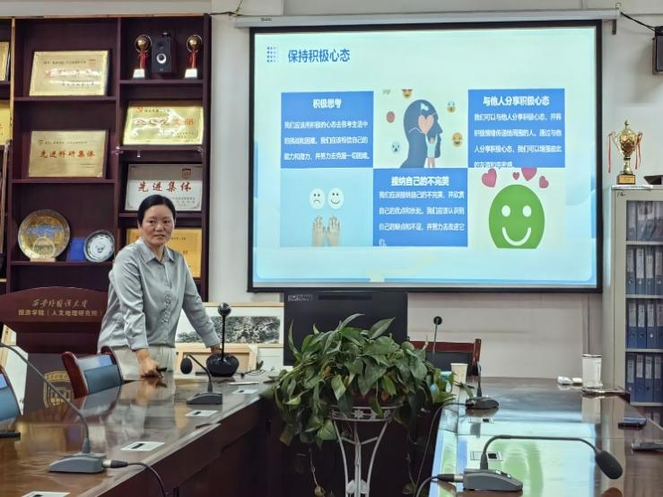 刘老师先用《哭婆婆》的故事引出今天的主题,告诉大家积极情绪的重要性。她表示,当我们面的生活中的压力和挑战时,积极情绪是我们内心的阳光,帮助我们驱散阴霾,保持坚韧和乐观,培养积极情绪,让心灵沐浴在阳光之下。刘老师也针对大学生常见心理问题提供行之有效的办法。