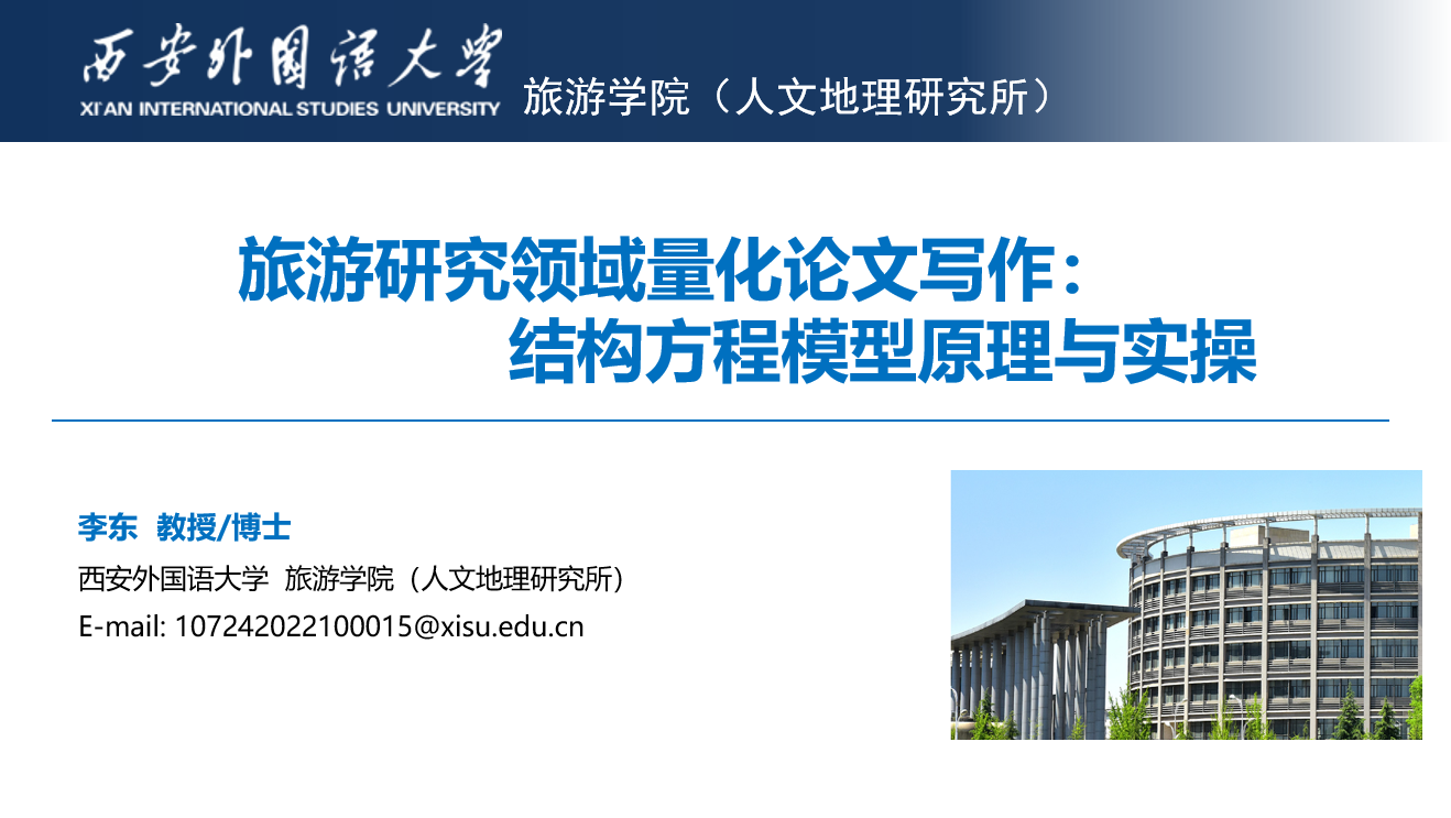 (人文地理研究所)李东教授为培训班作了题为《旅游研究领域量化论文写作:结构方程模型原理与实操》的专题汇报。