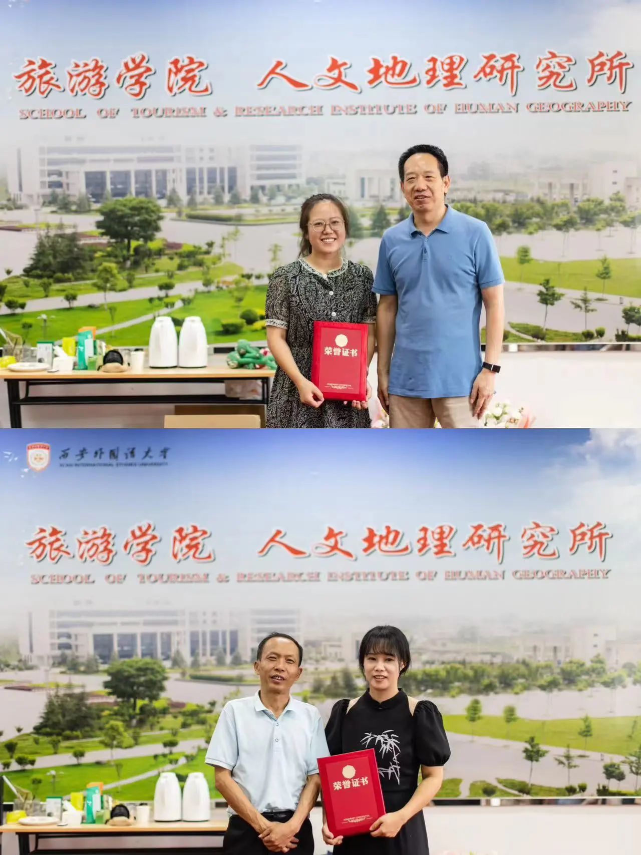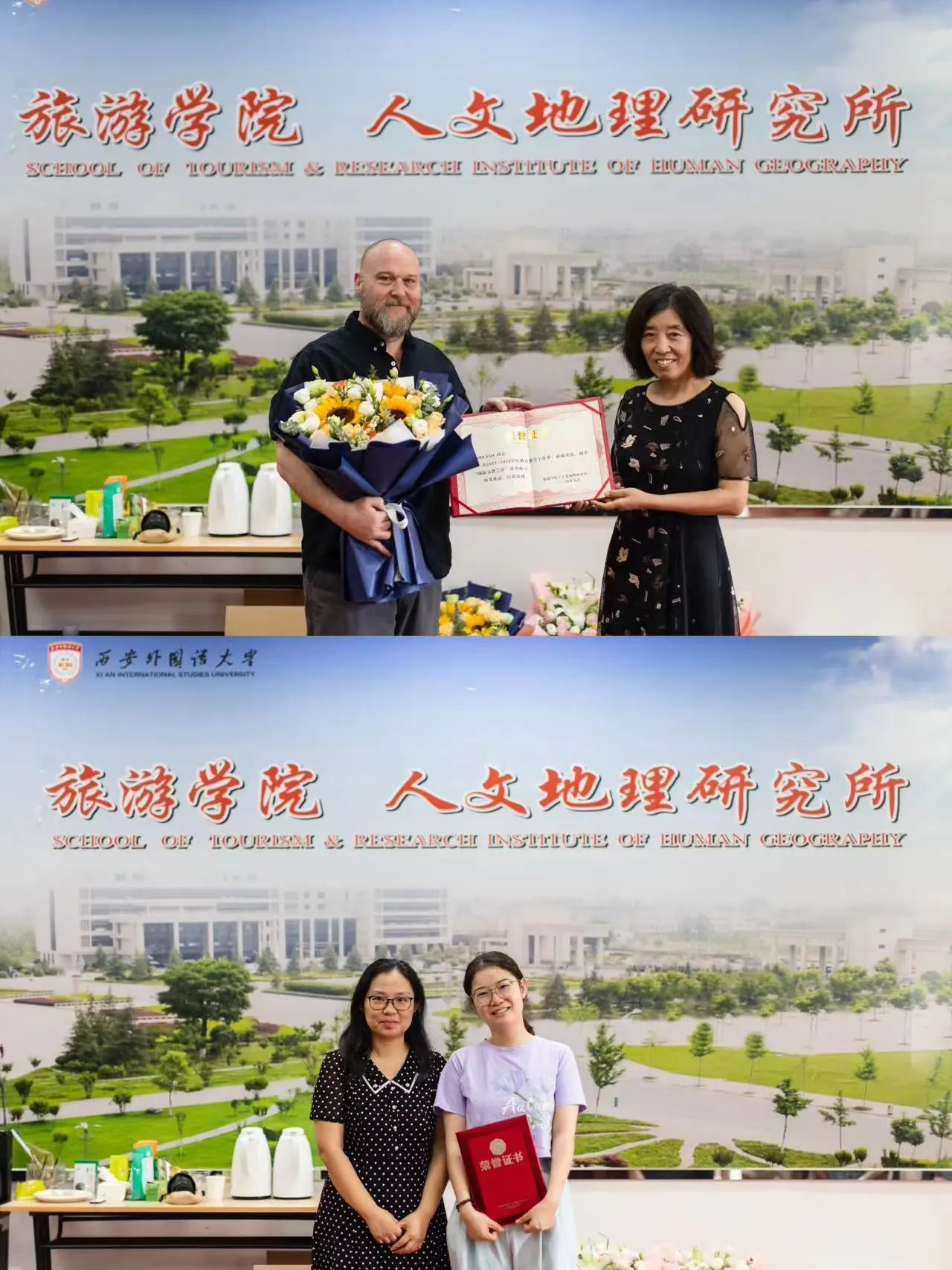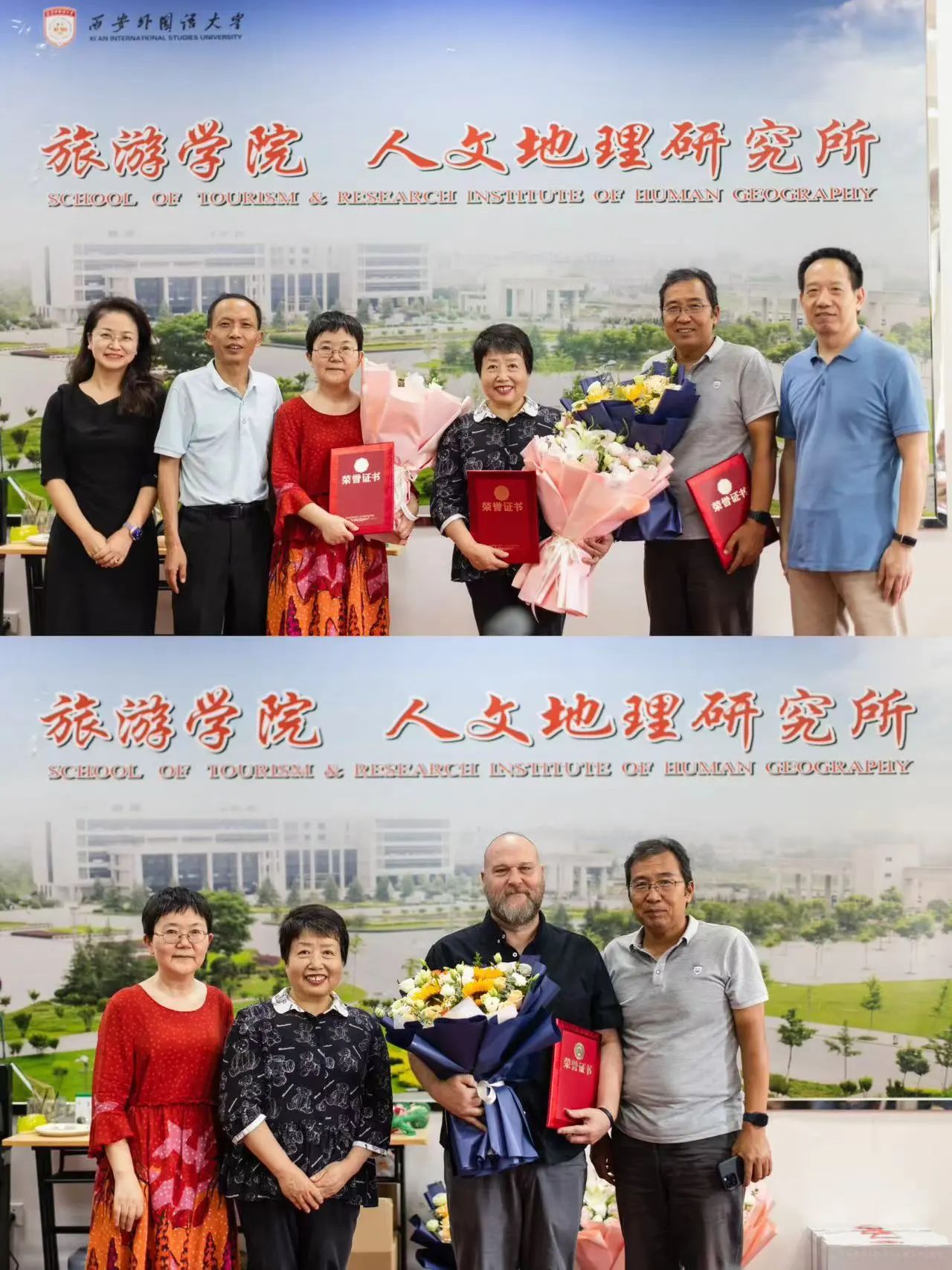 在退休教师荣休仪式上,学子们精心制作了祝福视频,再现了辛勤耕耘的难忘瞬间,表达了对退休教师的感恩之情。学院为王莉霞、黄蓓、杨红英、赵岗利四位退休教师颁发了“终身成就奖”,他们深情回顾了自己四十余年的从教生涯,对学院的未来发展寄予厚望。希望每一位旅院人能够无私奉献、默默耕耘、砥砺前行。在交流发言中,新老教师也纷纷表示,将传承老一辈优秀教师的优良传统,以“躬耕教坛”的自觉和“强国有我”的担当接续奋斗。