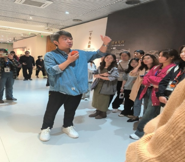 解说示范环节生动专业。田部长带领同学们来到一楼“探长安——西安市文物保护考古研究院30年考古成果展”现场。周末馆内看展游人如织,田部长全程导览热情真挚又专业规范,介绍了考古专家对西安的文化遗产的发掘、保护和研究成果。该特展提供考古模型、数字交互、互动体验等多种展示方式,将遗址场景生动地呈现在观众面前。这个过程使学生们对博物馆解说有了更真切的感悟,同时也对考古研究对于中华文明探源工程的重要性有了更深刻的认识,也坚定了传播中国优秀传统文化的信心。