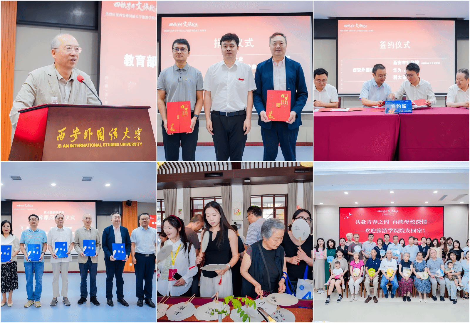 院长庞闻先后致辞,回顾学院四十载国际化、开放式办学历程,讲述一批批优秀文旅人才的成长故事,展示在讲好中国故事、陕西故事中贡献的“旅院力量”。随后,现场举行捐赠、战略合作签约、专家聘任仪式,赋能学院建设发展。会后院友共同参与非遗文化体验活动及返校座谈会。