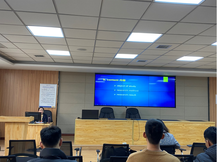 ·人文地理研究所副教授、硕士生导师赵静老师在SB210举行了一期关于“英文学术论文写作”的学术沙龙活动,活动由人文地理教研室主任段兆雯教授主持并致辞。