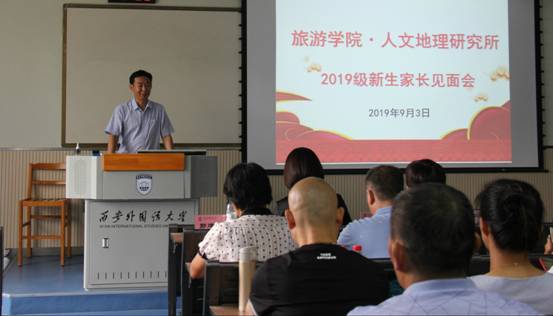 ·人文地理研究所在JA306召开了2019级新生家长见面会。会议由院党委书记郭建平主持,院长潘秋玲、副院长苏红霞、学工办主任张波、2019级辅导员胡森文以及近70名新生家长参加了本次见面会。
