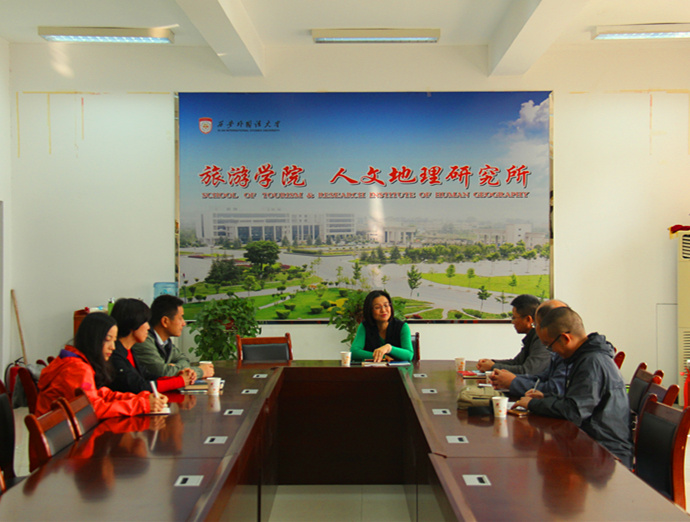 2018年10月12日上午,九江学院旅游与国土资源学院一行3人在院长李松志教授的带领下来好色网 调研。好色网 院长潘秋玲教授、副院长苏红霞教授在学院会议室热情接待了来访嘉宾,座谈会由潘秋玲院长主持。
