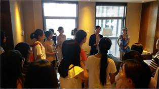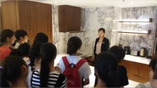 随后,酒店方带领同学们实地参观酒店内部的特色结构和设施。期间,酒店人员对公寓型客房内部设施建设的作用做了详细地介绍,并对其功能进行演示,极大地吸引了同学们的兴趣;另外,Kellen还结合酒店文化特色,从各部门结构、酒店文化、酒店员工晋升等几方面对酒店工作进行了清晰地介绍。在参观中,同学们就自己关心的专业性问题以及当今酒店行业发展的现状和趋势与酒店方进行了深入地探讨与细致地分析。最终本次活动在愉快的氛围中结束,同学们用热烈的掌声对酒店工作人员的热情接待和专业讲解表示了感谢,并与酒店Kellen经理合影留念。