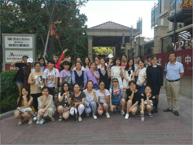 2018年6月13日下午,旅游学院2017级酒店管理专业全体学生在杨军辉老师的带领下前往西安万豪行政公寓进行课程实践活动。同学们在酒店人力资源部经理Kellen的带领下进行了认真的学习和观摩。在酒店的主题餐厅,Tony经理给同学们详细地讲解酒店主打的自酿德国啤酒,并邀请大家品尝。Kellen经理根据自己的从业经历,告诫同学们要有踏实的学习心态,沉淀自己的阅历,给自己明确定位,对于西安外国语大学酒店管理专业的同学更要掌握好英语,利用好这项优势。