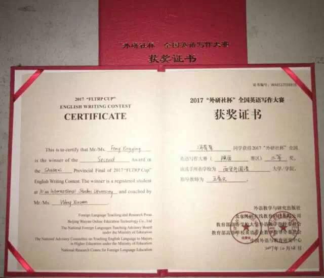 ·人文地理研究所冯莹莹同学获得2017“外研社杯”全国英语写作大赛(陕西赛区)二等奖,指导老师好色网
