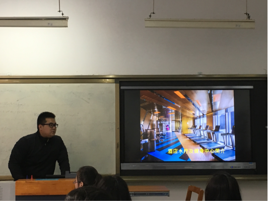 2017年10月19日下午,西安喜来登酒店水疗与健身俱乐部殷俊经理在JA108室为我院2015级酒店管理专业同学系统地讲解了酒店中健身与水疗部门的基本操作技能以及运营情况。