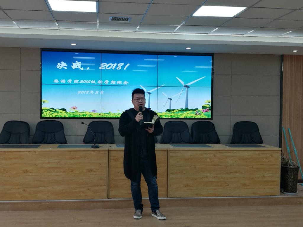 新学期伊始,2015级辅导员杜涛老师走进班级,以班会的形式给同学们做了“决战,2018!”的新学期动员会。杜老师主要从三个方面给学生们进行动员:一是开学的常规检查,主要包括了上课情况的检查和宿舍安全卫生的检查等内容;二是重点强调了校园安全问题,其中包括了人身安全、财产安全、思想安全及校外住宿的相关注意事项和规定;三是以“决战,2018!”为题的动员内容,杜老师主要分析了当前就业、考研和出国的形势,并就如何选择、如何准备进行了解读。最后,杜老师希望大家能够高效地利用本学期的时间,为即将到来就业与深造打下坚实基础。