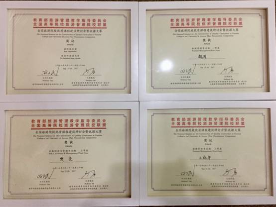 教师代表在西安参加了“全国旅游院校优质课程建设研讨会暨说课大赛”,全国本科类旅游院校共计推选出70余支教学团队参加了总决赛。我校教师代表团赛前充分准备,临场出色发挥,突破重围,创造佳绩。魏周《遗产旅游》课程荣获大赛一等奖,王晓华《旅游社会学》课程和樊蓉《会展管理原理》课程荣获三等奖,熊关《微观经济学》课程、张玲《统计学原理》课程以及金倩《游客消费行为》课程荣获优秀奖。我校苏红霞教授应邀做了题为《旅游类双语课程建设与实践--以旅游学概论为例》的大会主题报告,由于各方面的出色表现,我校还被评为“全国旅游院校优质课程建设说课大赛”的最佳组织单位。