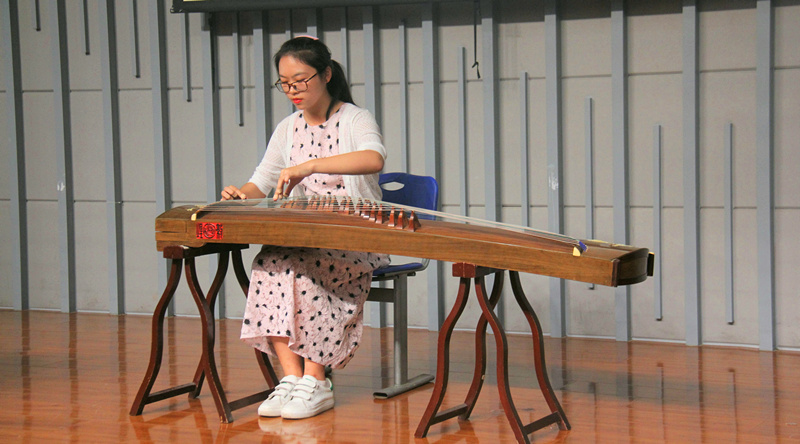 接下来的中场休息期间,17级旅游管理专业的王妍心同学为大家带来了优美动听的古筝演奏,所有人都沉浸在美妙的音乐声中,希望同学们的大学生活也能如此多姿多彩。