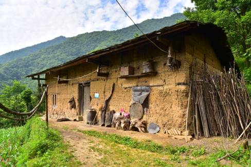 两天后,两位老师背上背包,带上水、干粮再次去看望郭忠美,这回同行的还有驻村书记刑鸿岳,一个80后的村干部。当走到村口问路时又被乡亲劝说不要去了,看我们肤色,估计觉得是城里来的,没有走过山路。估算我们往返得5个半小时,而且山路危险,杂草丛生,悬崖陡壁较多,天黑回不来。继续前行,再次问路时又被劝说不要去了,太远。三人商量下,结合实际就地取材,各自带了一根拄杖,其中成老师说:这就是小马过河,各有各的说法,不试试怎么知道?也是,以他10年骑行的经验,包括我10年爬山的经验,只要有人住就有路,于是快步赶路,顺着村后的小路爬山前往。