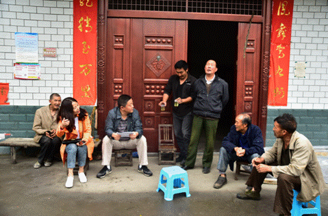 书记张淼和两位老师冒雨来到白坪村。先走访了路边第一家,经济条件还好,家里有智障老人。询问了住房状况、收入来源及村里其他贫困户的住址和家里基本情况。从中了解到该村由于地处偏僻地带,交通闭塞,近亲结婚现象严重,导致弱智智障人口较多,也是贫困原因之一。