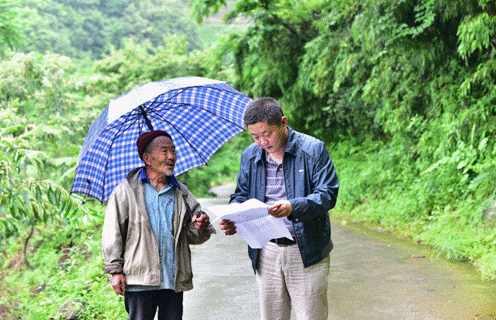 走访几家之后,开始询问帮扶对象郭忠美家如何走,在得知单程需要三个小时,而且是大山深处,下雨天几乎无人敢去。于是在乡亲们的劝说下打消念头,回到村委会。