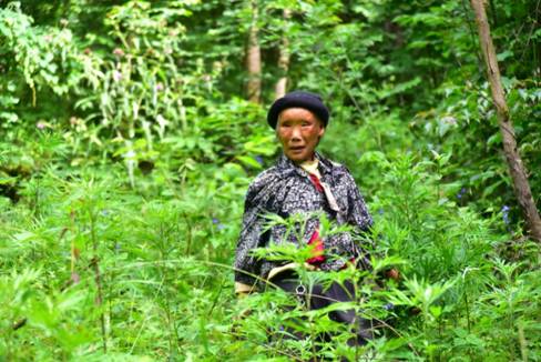 第一次看到老人,心里咯噔以下,虽然有所准备,还是被老人的形象震撼了!独自在山上放养40多只羊,期间还要挖草药。