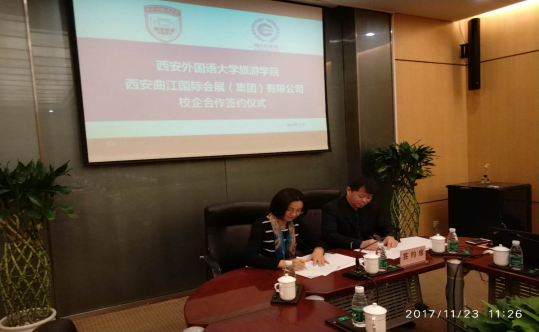 ·人文地理研究所与西安曲江国际会展(集团)有限公司校企合作签约仪式在西安曲江国际会展中心举行。为了探索校企联合培养创新型、实用型人才的新模式,发挥企业资源优势和学校人才培养优势,达到资源共享,实现双赢,双方签订学生实践合作协议。
