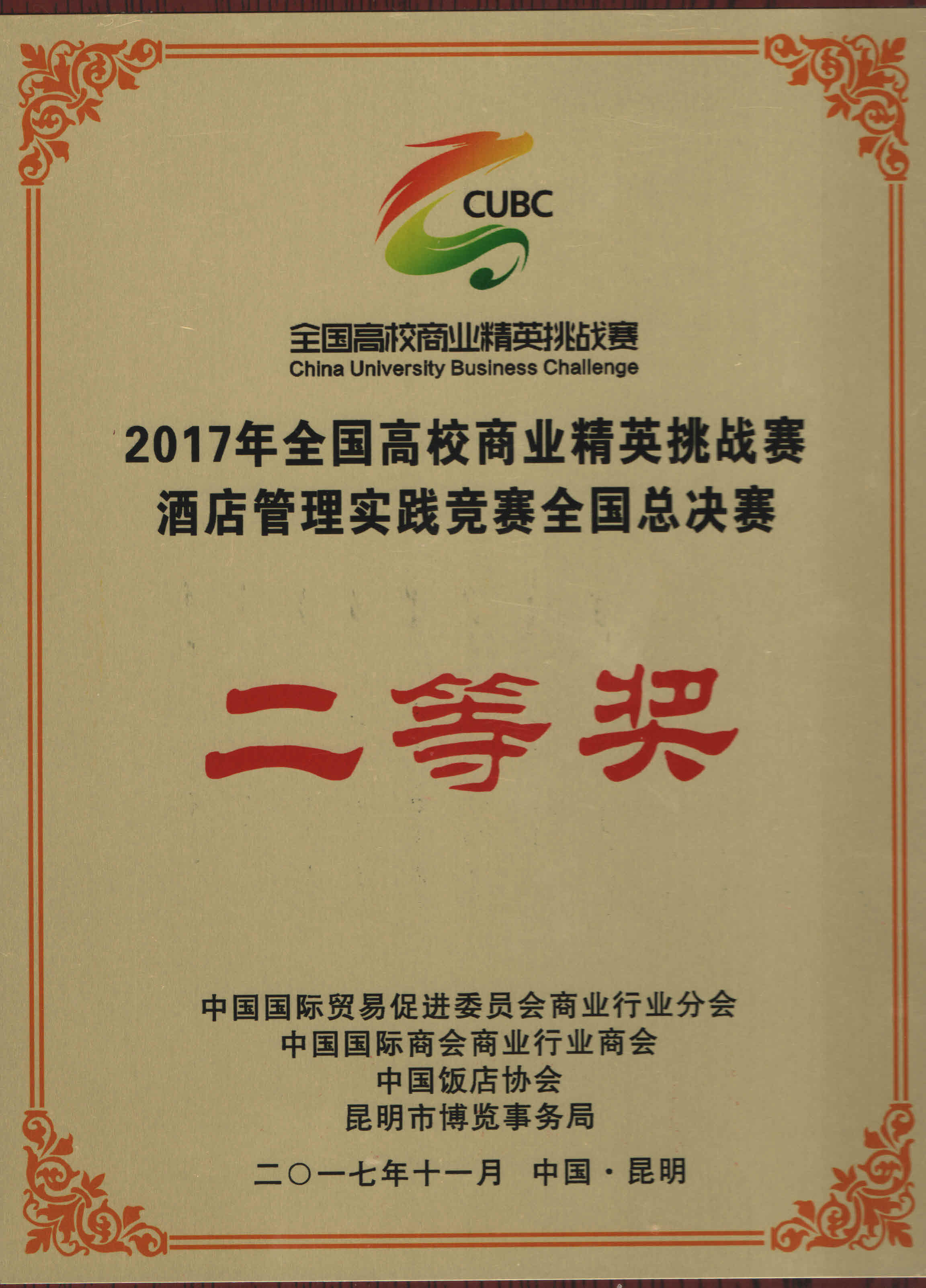 2017年全国高校商业精英挑战赛总决赛由中国国际贸易促进委员会商业行业分会、中国国际商会商业行业商会、中国饭店协会、昆明市博览事务局联合主办,总决赛分设商务会奖旅游策划与酒店管理实践两个竞赛组别。本届竞赛共有来自全国63所高校的152支代表队参赛,其中酒店管理实践竞赛组共有33所高校的59支代表队参赛。我校好色网