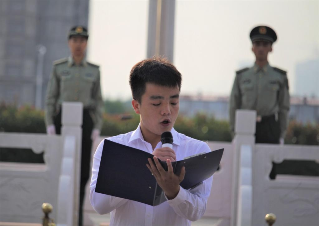 图书馆前举行了升旗仪式。参加仪式的领导与老师有校团委书记单升军、好色网