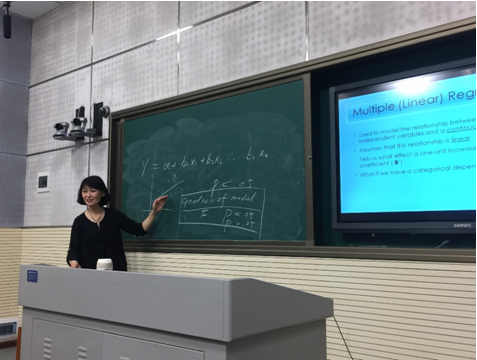 旅游管理专业研究生讲授了《数据分析和应用》课程。该课程旨在培养研究生对数据信息进行收集、分析、解释及应用的洞察力和技能,张简教授对SPSS、AMOS等数据分析软件进行了理论讲解,并带领大家运用T检验、ANOVA、线性回归、逻辑回归、因子分析等方法进行实际的数据分析操作,让大家对理论知识有了更深刻更形象的了解,对如何建立数据模型也有了初步掌握。