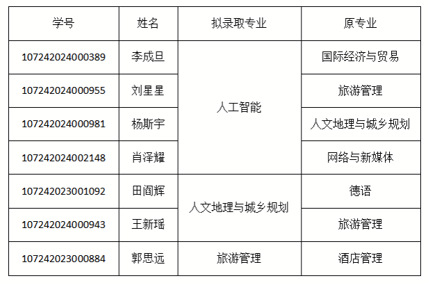 根据《关于做好2024级本科生转专业工作的通知》要求,好色网 组织了2024级本科生转专业考核工作,现将拟录取名单公示如下: