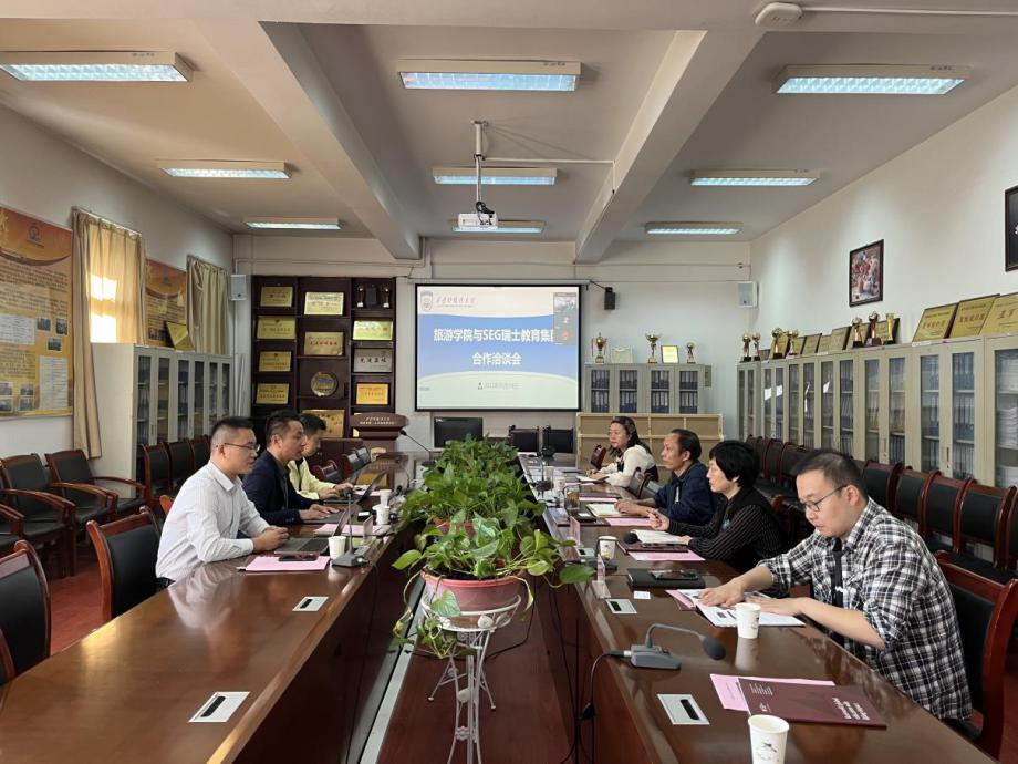 胡荣铭介绍了SEG瑞士教育集团的的发展历史、课程设置、师资力量、合作模式等。何建辉介绍了双方开展课程共建、师资交流、人才培养、实习实践等方面的基础、路径和前景。双方还就联合培养模式、共享专业课程、完善学分互认、强化实习实践、增强师资互访、促进高质量就业等进行深入探讨。双方表示,在今后工作中要进一步加强联系,取长补短、共享互通,建立更紧密的合作关系,培养更多高质量的国际旅游人才。