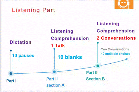 首先,黄文英介绍了考前注意事项、考试流程及考试题型,随后就专四听力部分进行了详细的讲解,帮助学生理清了篇章听写、讲座和对话理解部分的常考题型和解题思路。此外,黄老师还分享了听力部分对应的备考策略和做题技巧,指出了运用速记符号、记关键词的重要性。