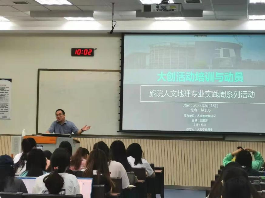举办大学生创新创业训练计划项目申报培训与动员专题讲座。本次讲座特邀人文地理与城乡规划教研室王鹏涛老师作报告,马琪老师主持,2019级、2020级、2021级人文地理与城乡规划专业同学和其他专业同学共90余人参加了此次讲座。