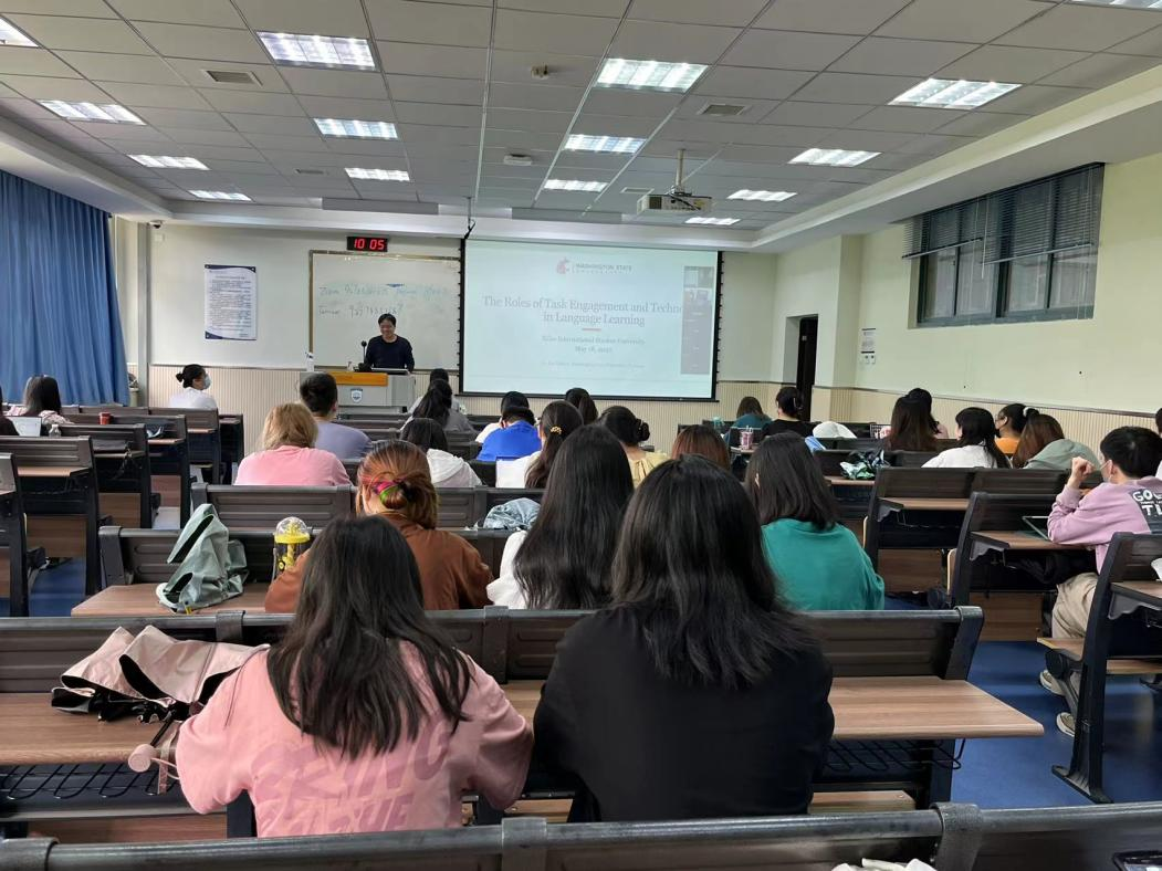 与会师生带来了脑力的激荡与生动的演示。艾格伯特教授随后向大家列举了任务设计对语言学习的众多好处,譬如能给学生充分利用所学知识的机会,激发他们的兴趣。任务设计还能给学生带来新的挑战,挖掘他们的潜能,从而get到新技能。同时,艾格伯特教授表示教师和学生可以有效地利用计算机与网络技术,譬如综合运用视频、播客、图片以及文字等形式来发起任务、完成任务,通过网络上的海量资源和社交媒体为提升学习效果。