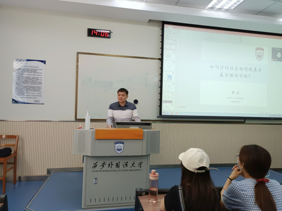 学生做了题为“如何针对社会经济现象开展合理分析”的专题讲座。陈乐博士从论文撰写中的图片排版问题、学生小组参赛时PPT的制作、网页宣传、微信推送等方面解释数据在实证分析中的重要性,同时从宏观数据、微观调查数据、爬取数据等数据的来源向同学们展示了获取数据的手段方式,并通过认识数据、清洗数据、数据可视化三个阶段向同学们讲解如何开展数据分析以及如何通过数据包络法深入分析数据。讲座加深了同学们对数据分析的理解,进一步提高了同学们的专业学科能力及专业素养。