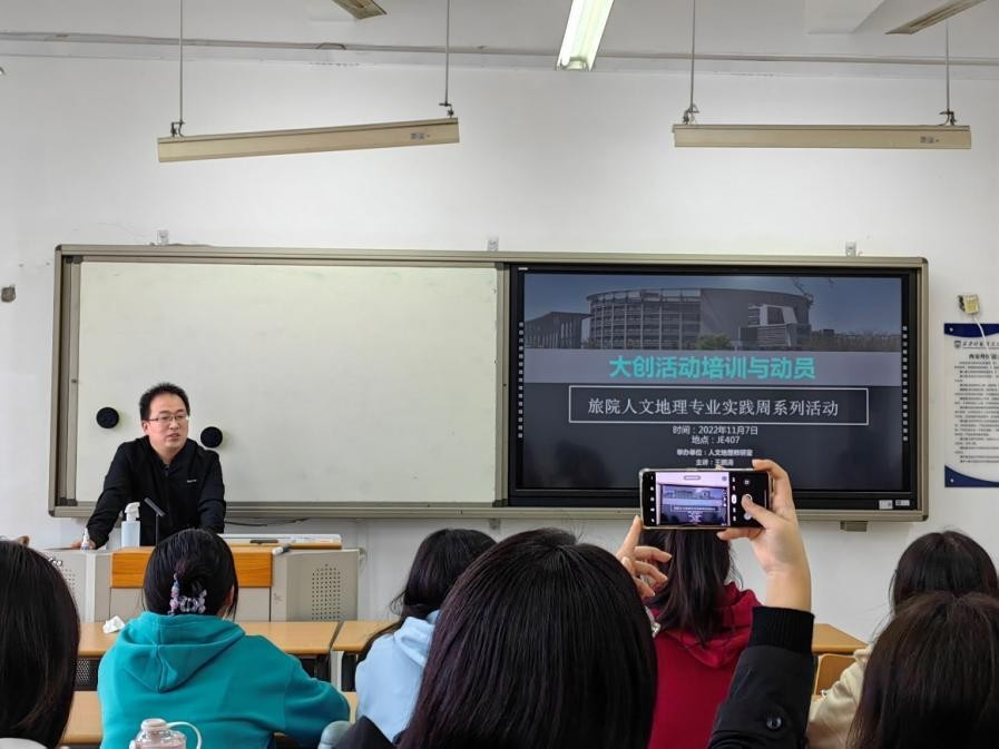 2022~2023学年秋季学期学术创新与教学实践周系列活动的开场。本场讲座由人文地理与城乡规划教研室王鹏涛老师主讲、黄观老师主持,2021级人文地理与城乡规划专业同学及旅游管理专业同学参与了此次讲座。