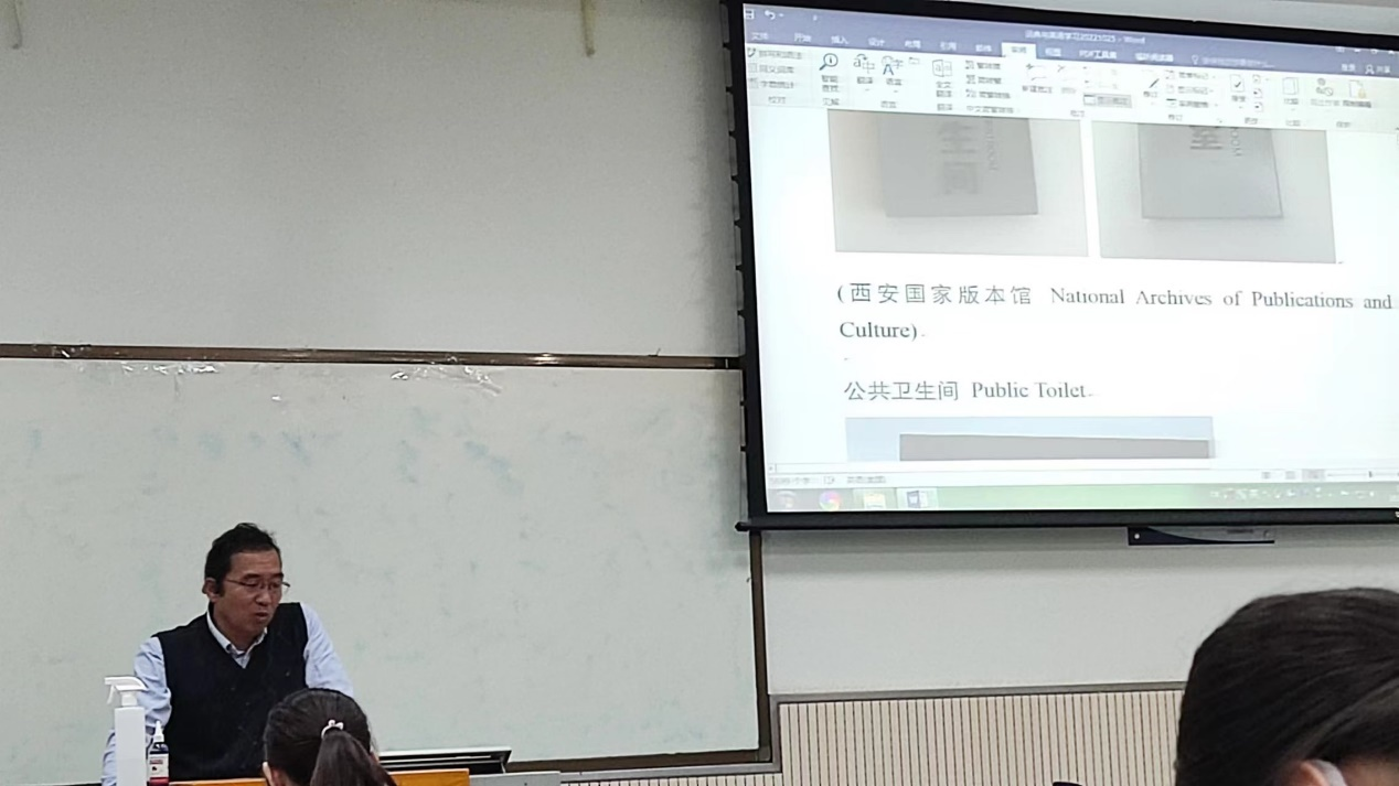 而后赵老师通过各种图片例子向我们解释为什么要使用词典的2个原因——汉字不认识,英语单词不认识、不会读。同时赵老师通过多种实例向同学们展示了不同的汉语造字、英语造词。基于以上内容的铺垫,赵老师向我们解释了为什么要编写汉英词典,并通过身边最简单的厕所标识以及浴室标识上的英语单词、食堂上的光盘行动等多种标识上的词句错误通俗易懂的进行阐释。