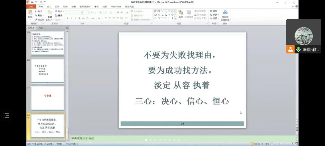 本次讲座,让同学们对考研有了一个更为全面的认知,明确、清醒的考研目标与充分的准备是考研成功之路上不可或缺的准备。同时,拥有淡定、从容、执着的强大内心,也是成功路上的垫脚石,考取名校的敲门砖。
