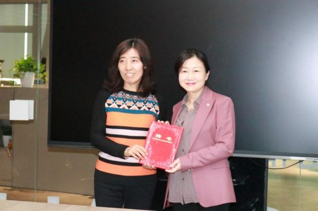 苏红霞副院长同费文娟副总经理就校企合作等方面的内容展开了深度的交流,双方对彼此间更深度的合作有着共同的目标和美好的期盼。随后,双方在愉快的氛围中举办了聘书颁发仪式。