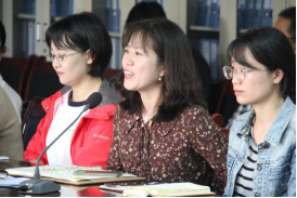 第四项内容为青年教师学习感想与科研计划交流。新入职教师赵婷、黄晨璐、李佩霖、黄清燕从自身学科背景与研究方向出发,结合各位教师的申报经验,对自己未来的科研发展进行了阐述与规划。