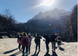 整个调研过程轻松愉快。虽是冬季但天气显得格外温暖,同学们热情高涨,兴致勃勃,在山脚下整装待发。出发前,辅导员秦怡老师强调了爬山中的注意事项,提醒大家不要随便离队,时刻牢记安全第一,鼓励大家成功登顶。山路陡峭,经过三个小时的不懈努力,同学们看见山中美景,脸上瞬间浮现笑颜。大家在前进途中,不断交流途中所见人文景观、动植物,讨论在平时学术研究上的经验,收获颇丰。通过此次调研,同学们深入了解了翠华山景区规划方面的包括气象、水文、地质、自然资源、历史文化、人口、行政区划、社会经济、企事业单位、交通运输、旅游设施、基础设施、土地利用和环境等方面内容,以及景区规划的流程,为区域旅游规划与实践课程打下了基础。