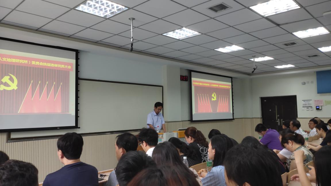 (人文地理研究所)委员会换届选举党员大会于实验楼SD206顺利召开。校党委职能部门负责人苏坤列席指导,学院133名师生党员参加会议。郭建平同志主持大会。