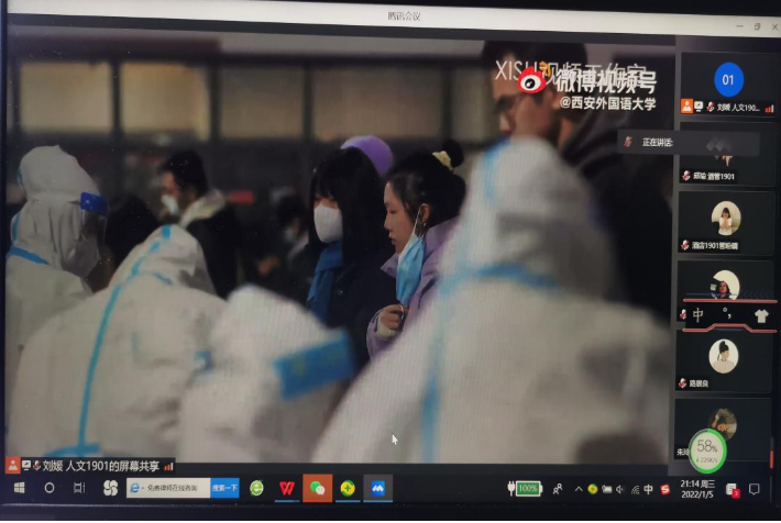 王梦琦同学表示:自从疫情封校以来,为保障同学们的正常生活,学校和学院付出了很多努力,许多老师都报名当志愿者,看到平时在课堂上教书育人的老师在食堂切菜做饭的身影,令她心里十分感动;作为一名预备党员,在疫情这种特殊时刻就应该发挥自己的作用,为抗击疫情献出自己的一份力量。疫情无情人有情,感谢学校和学院关心和爱护,老师和同学们的心在这样的特殊时刻紧紧联系在一起,大家一起努力、共克时艰,西安和西外马上会迎来光明的!