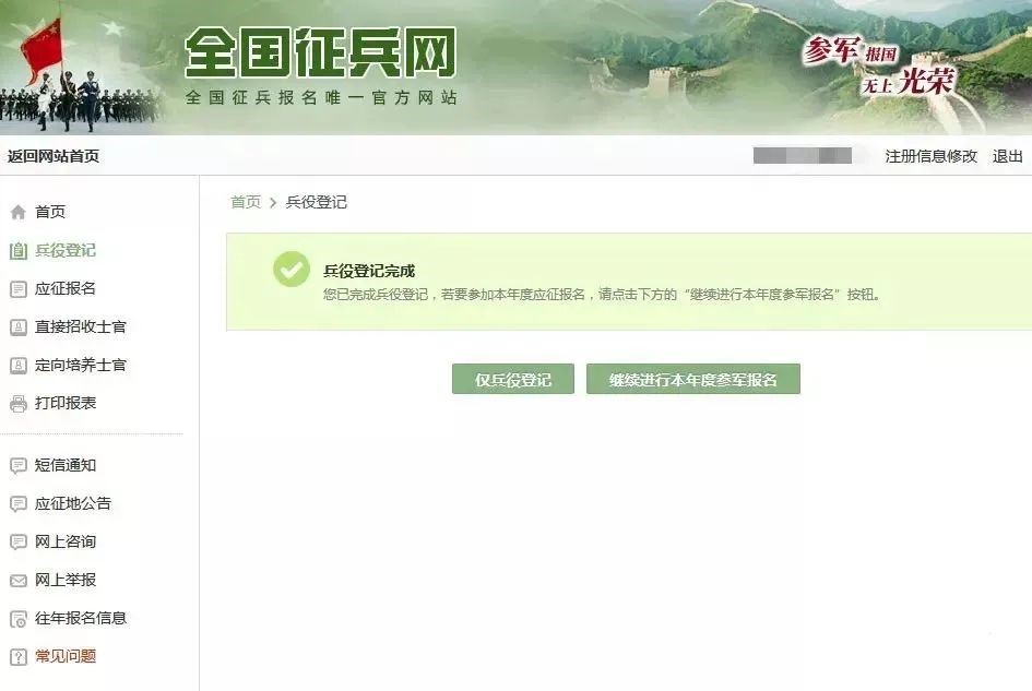4.兵役登记完成后,点击“继续进行本年度参军报名”,完善个人信息。