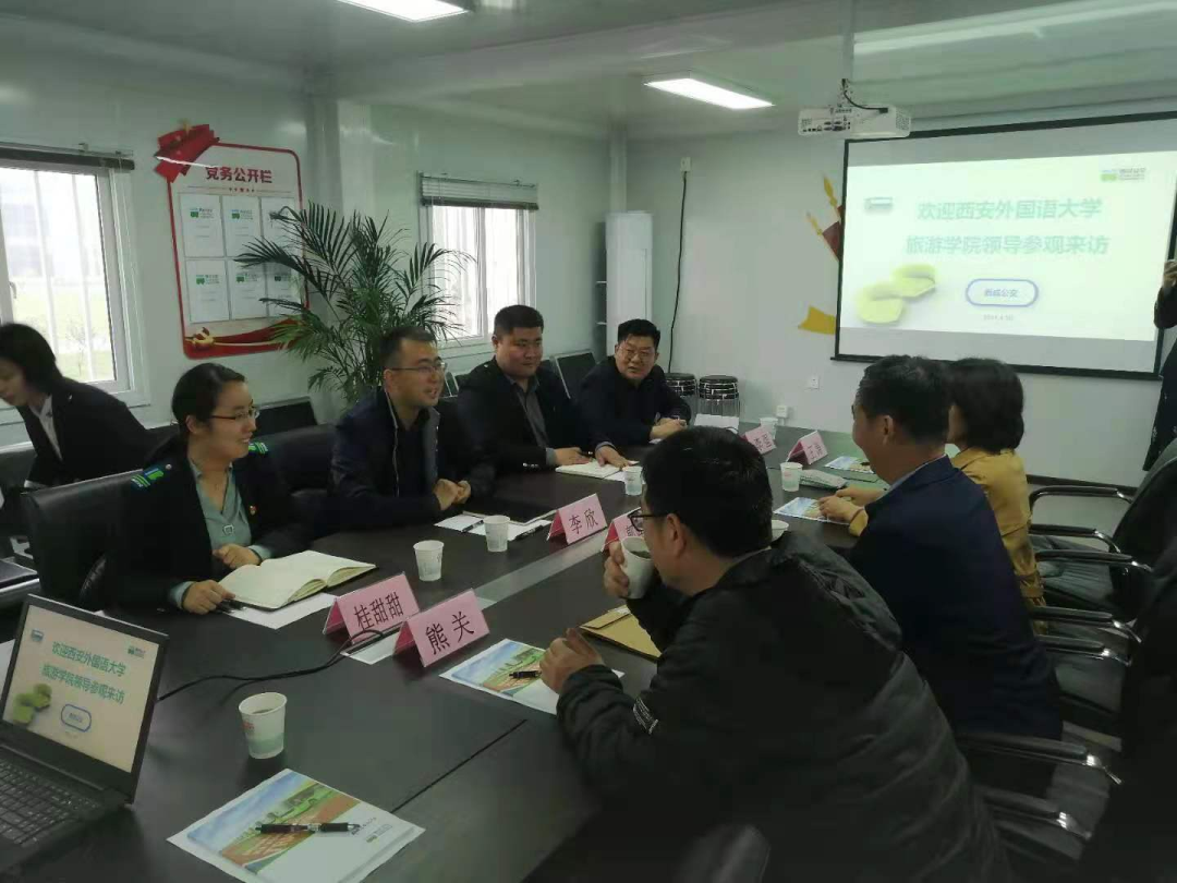 党委书记郭建平、副院长苏红霞、酒店管理教研室主任熊关以及毕业生辅导员王涛一行4人,赴中旅(咸阳)海泉湾有限公司、西咸公交集团实地走访调研并洽谈毕业生就业实习就业基地合作等。受到企业的热情接待。